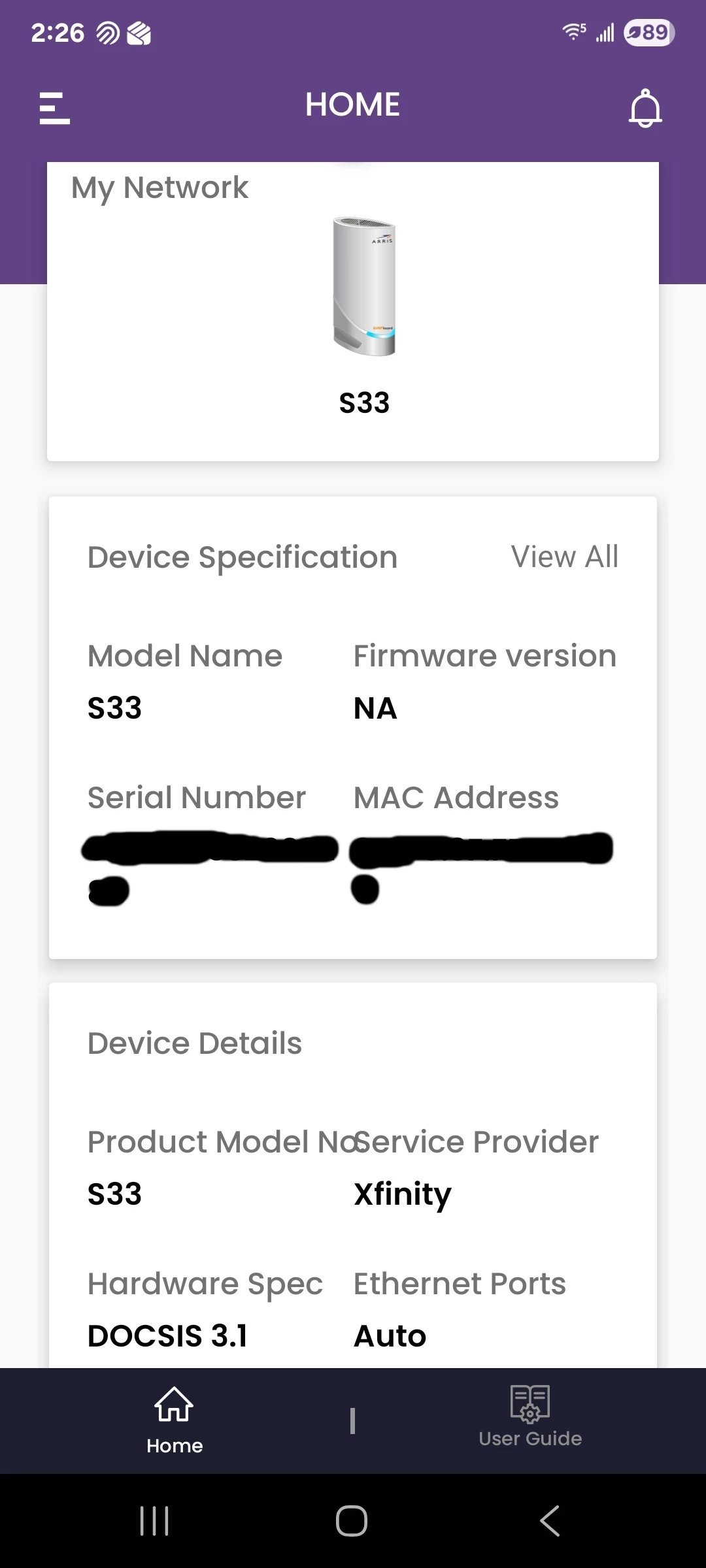When I download the app on my android and create and account, login, the application doesn’t tell me anything other than the model number, serial number, mac address, service provider, hardware spec, and ethernet ports. All of which I already know and have on the outside of the machine. Even worse, it doesn’t give me any information that the browser gives me like status, configuration, even logs, etc.